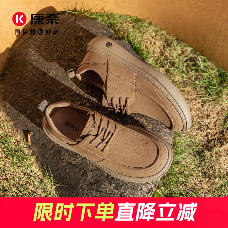 康奈男鞋英伦风男真皮休闲皮鞋青年百搭软皮商务办公室轻质正装鞋