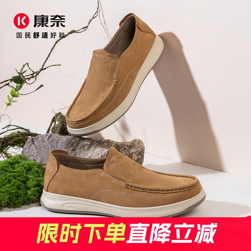 康奈男鞋真皮复古商务休闲经典男士轻质软底爸爸皮鞋公务鞋一脚蹬