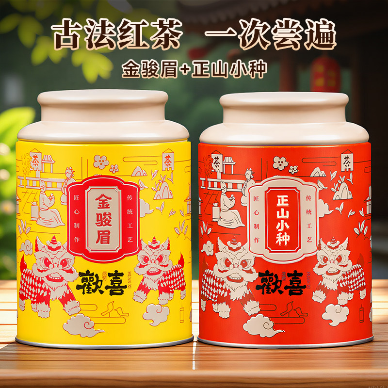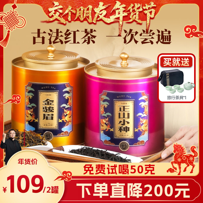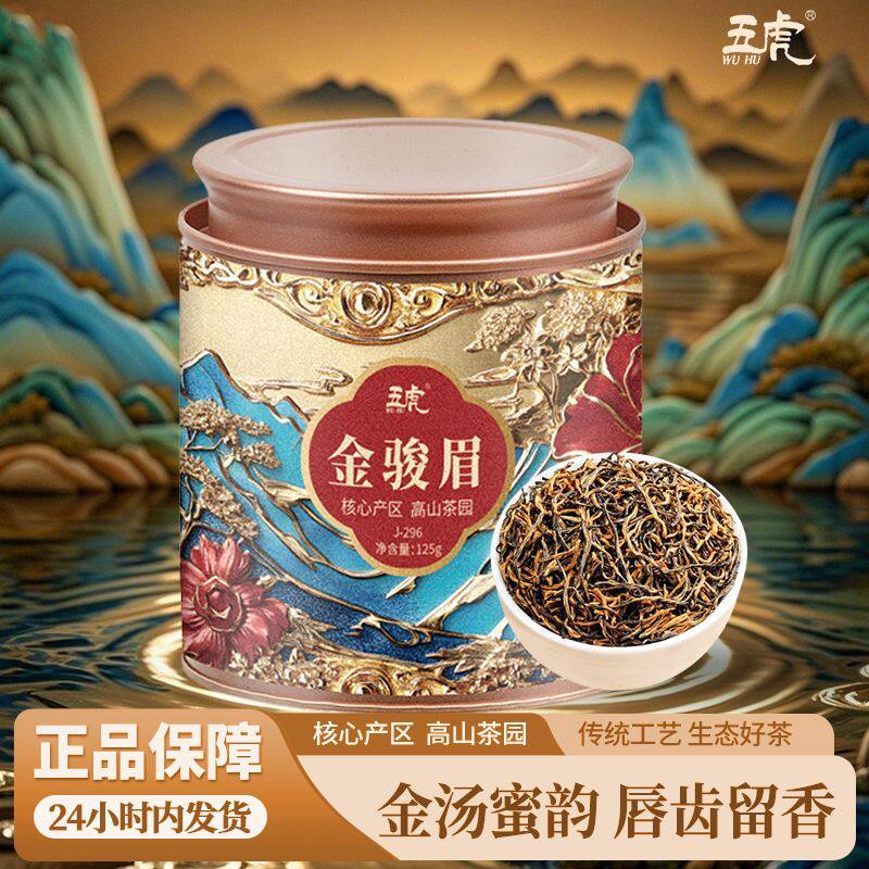 五虎正山小种金骏眉红茶茶叶官方旗舰正品特级金俊眉罐装新茶散茶