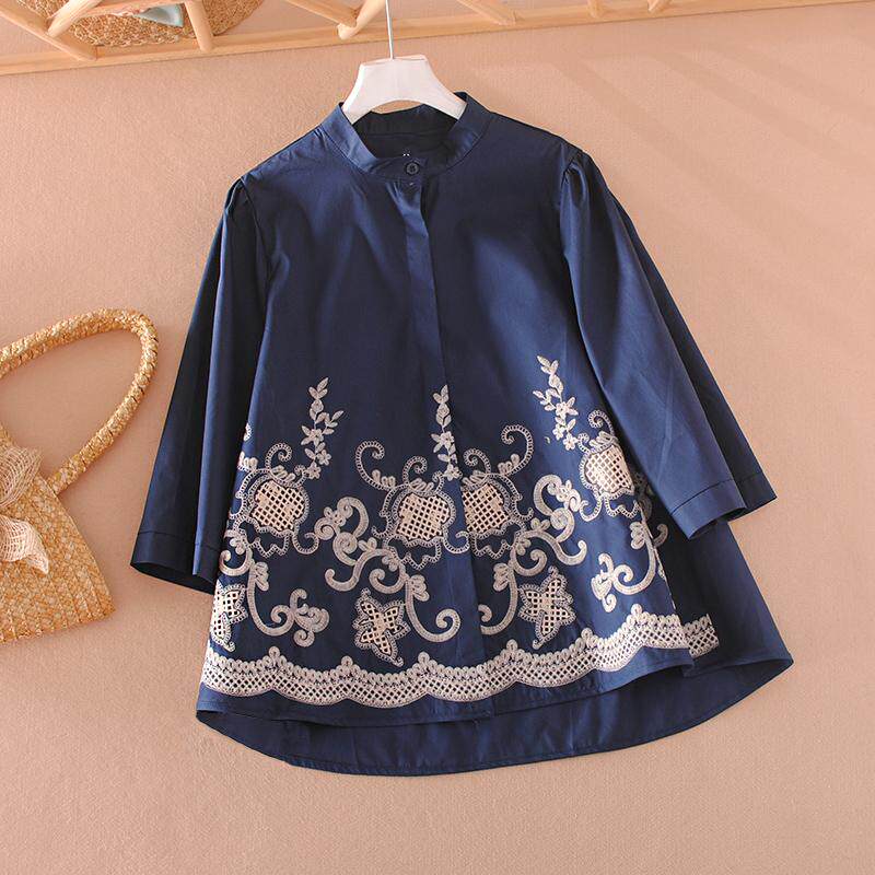 原创时尚重工刺绣花白色衬衣女复古高级感纯棉开衫A版衬衫女上衣