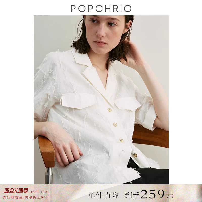 【到手259元】法式剪花古巴小翻V领短袖衬衫复古宽松白色衬衣女夏