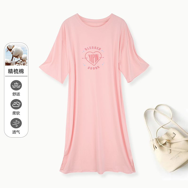 邑品女式连衣裙 夏季宽松短袖T恤裙 粉色桃心字母薄款运动休闲裙