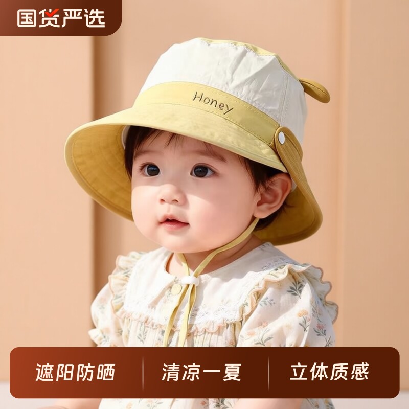 宝宝帽子夏季遮阳帽男女童渔夫帽婴儿大檐网眼披肩防晒太阳户外薄