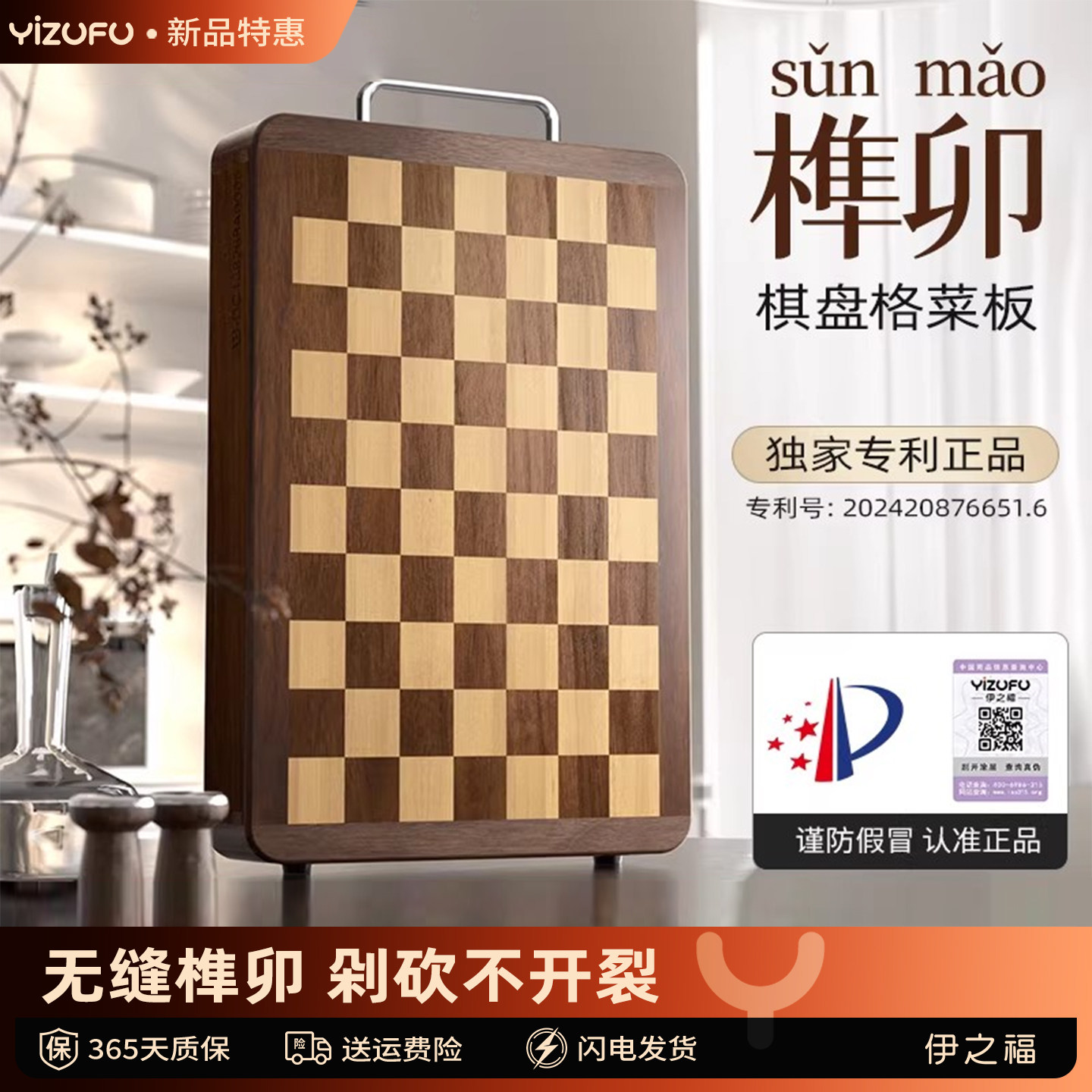 榫卯棋盘格乌檀木菜板防霉抗菌家用实木砧板双面切菜案板厨房专用