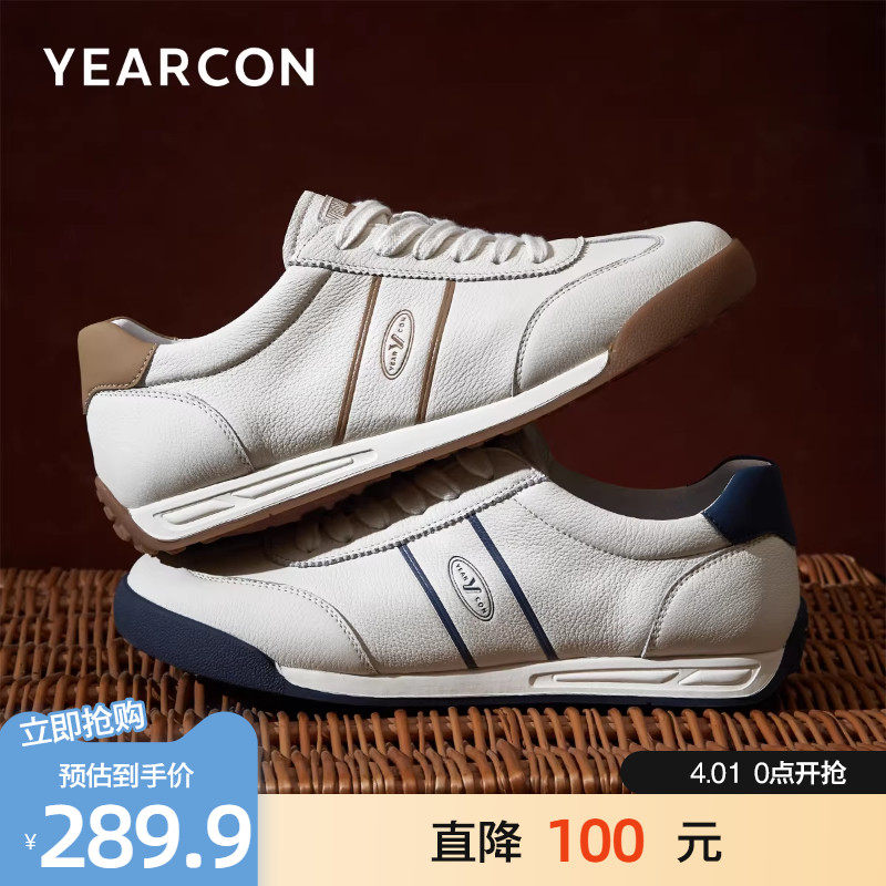 意尔康板鞋男春款头层牛皮小白鞋时尚百搭复古平底低帮赤足休闲鞋