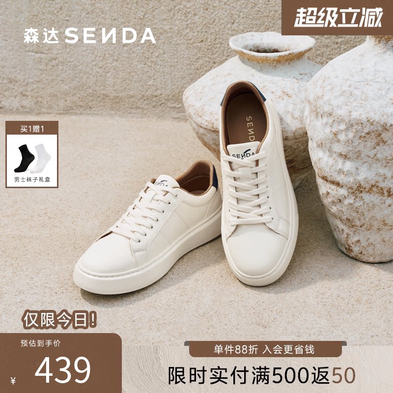 森达板鞋男2026春新商场同款时尚简约休闲百搭平底小白鞋2CT01AM6