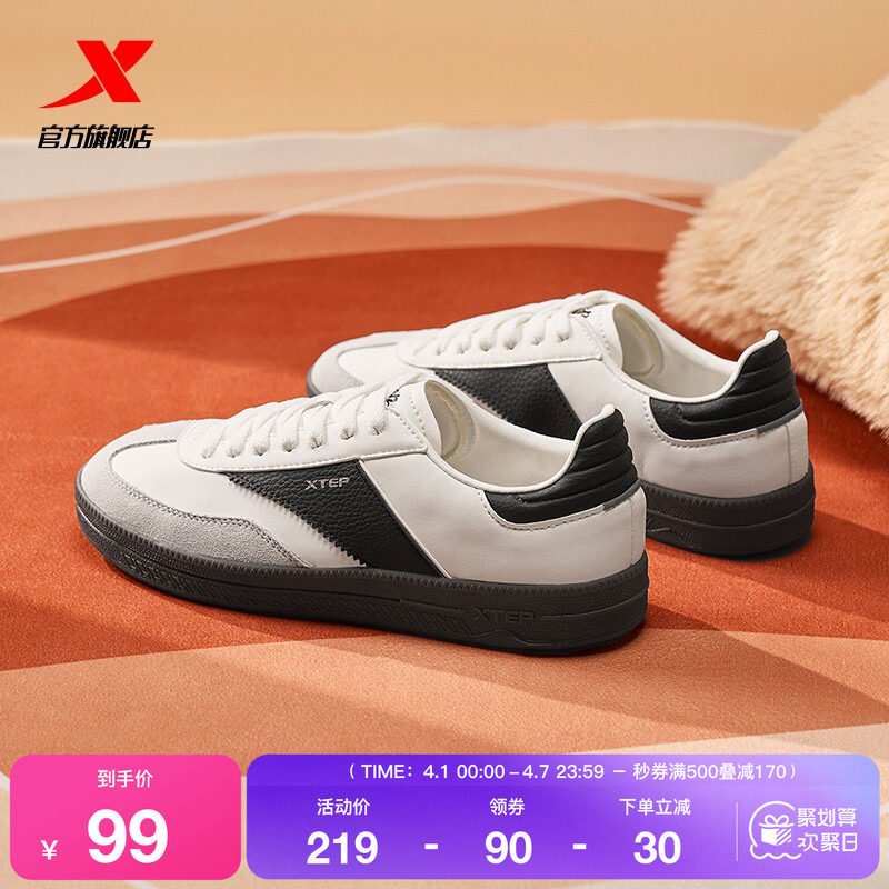 特步德训鞋板鞋女鞋2026夏季小白鞋T头赛车鞋休闲鞋平底运动鞋男