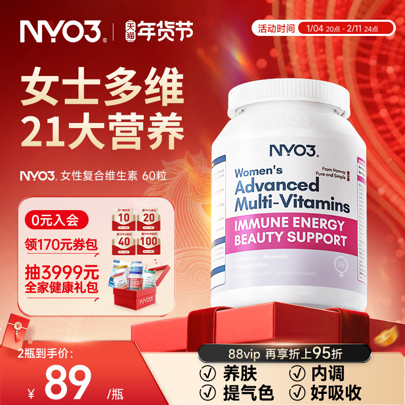 NYO3女士多种复合维生素22种营养闪充能量健身补给维生素葡萄籽