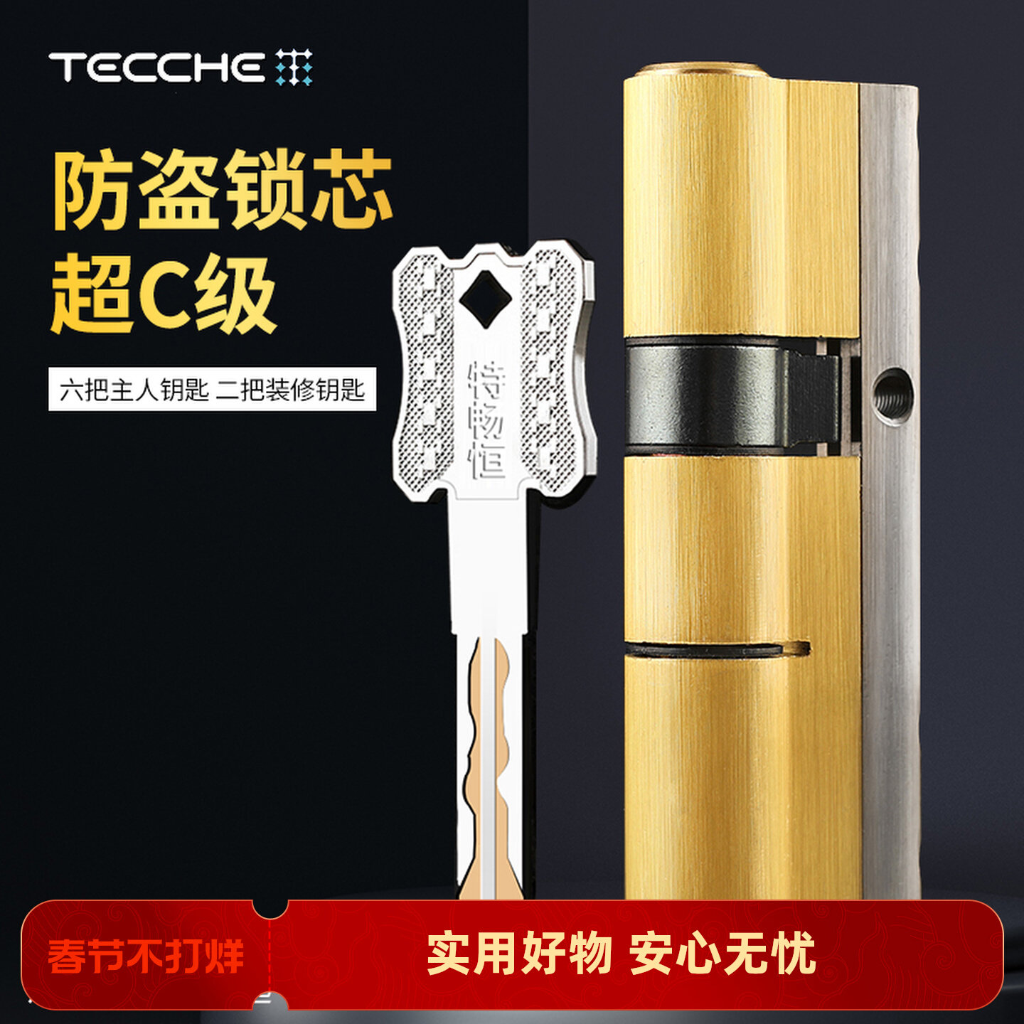 特畅恒锁芯超C级防盗锁芯入户门大门锁芯家用通用型锁具叶片铜芯