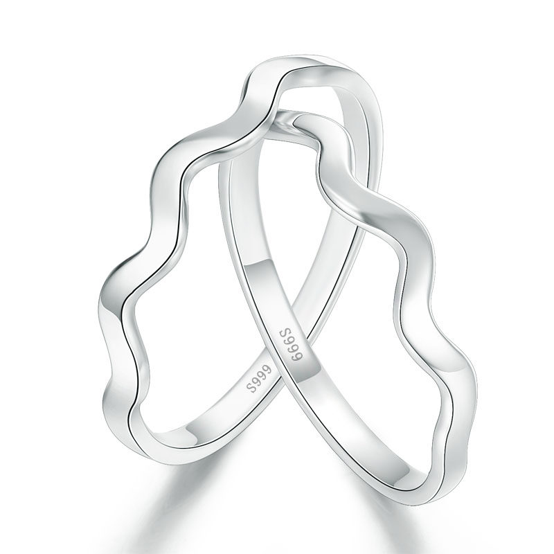999纯银戒指女 情侣戒指环曲水波浪 老银手工戒指个性创意戒指