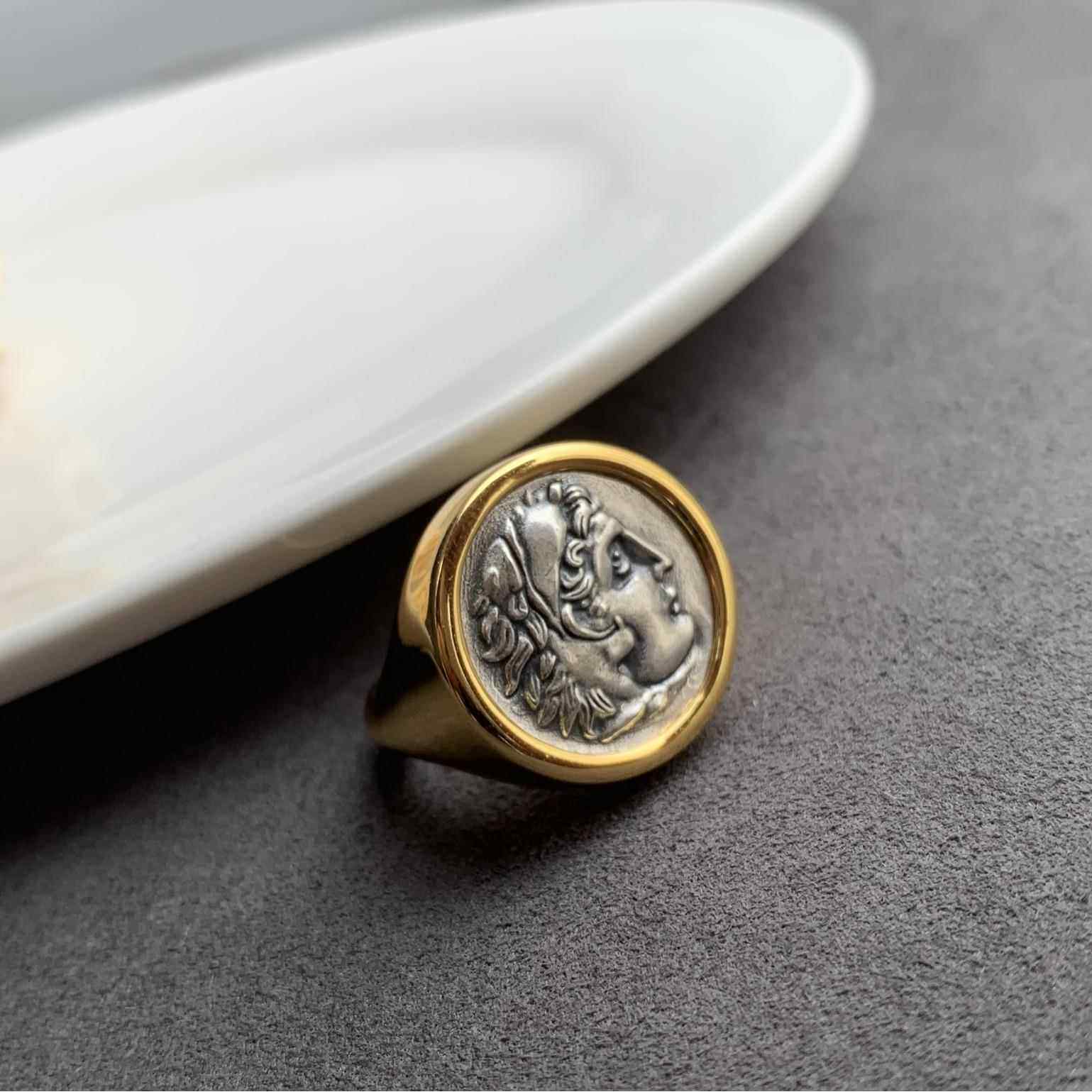情侣戒指大力神古币希腊个性创意嘻哈人头像男女复古饰品金币对戒
