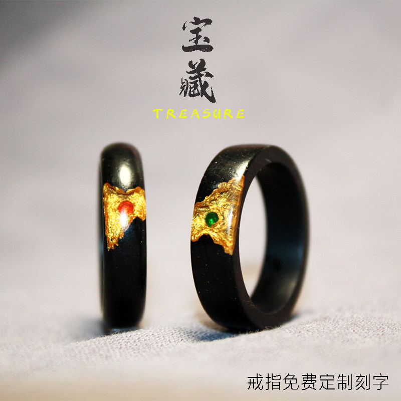缘起藏墨原创紫光檀木戒指男女情侣指环创意礼物菩提手链跑环刻字