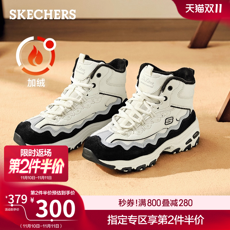 斯凯奇冬季女鞋加绒保暖老爹鞋厚底增高高帮休闲运动鞋耐磨雪地靴