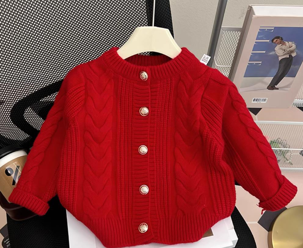 加厚版!新年红色V领毛衣开衫女外套春装新款宽松百搭针织衫上衣
