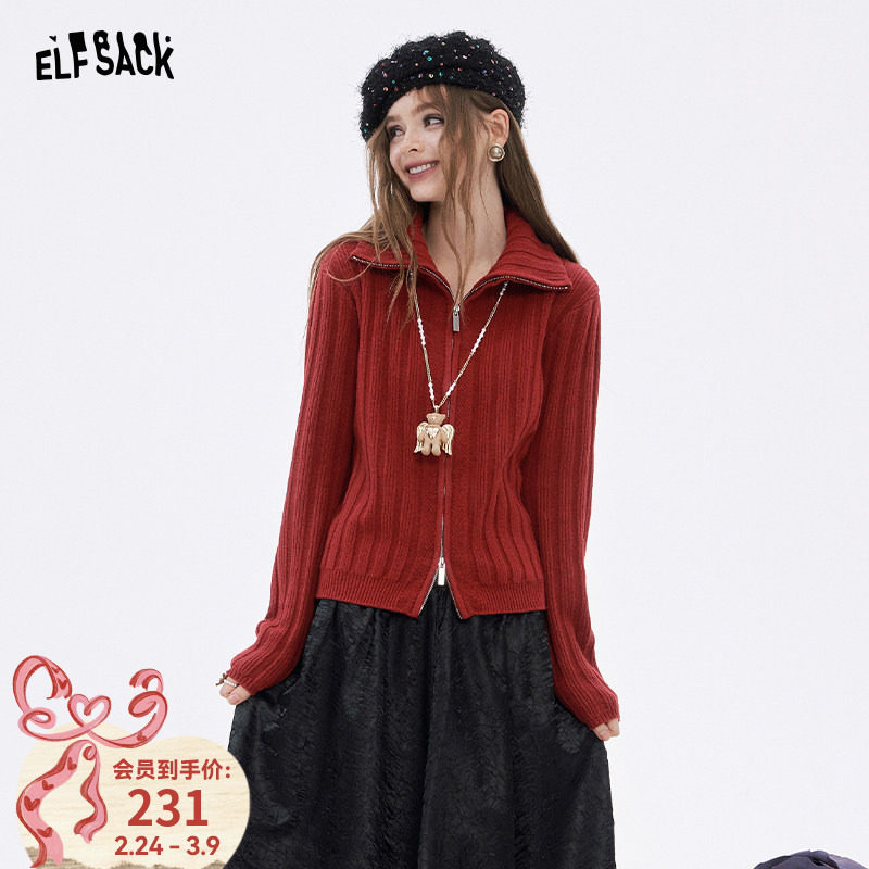 妖精的口袋高领拉链加厚红色毛衣女2026年春季新款高级感开衫外套