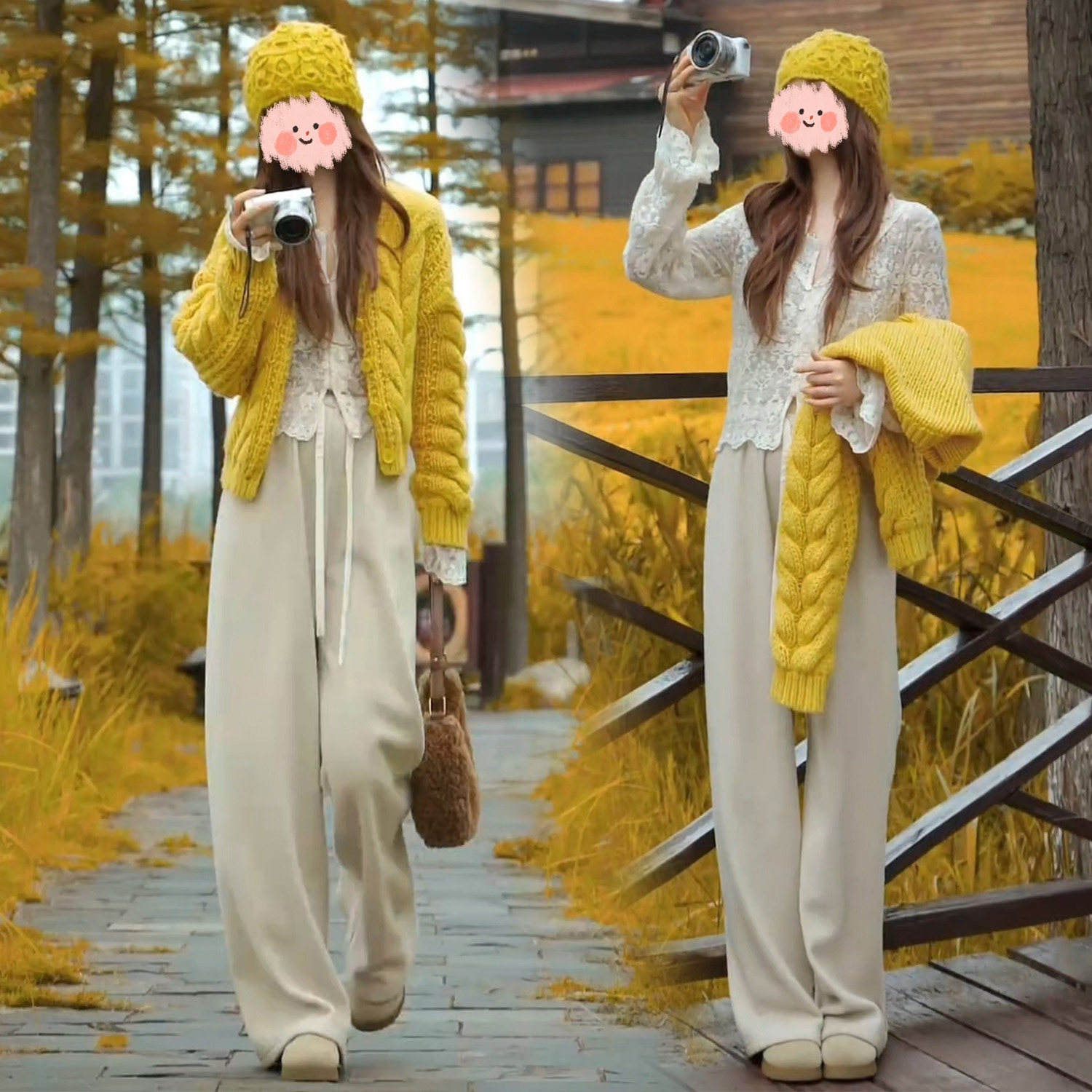 黄色粗线加厚毛衣开衫外套女秋冬宽松慵懒风短款小个子针织衫上衣