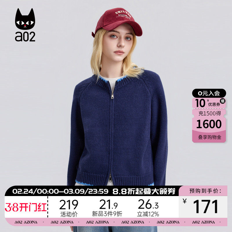 a02宽松圆领毛衣开衫外套女2025新款冬季加厚保暖针织衫上衣冬装