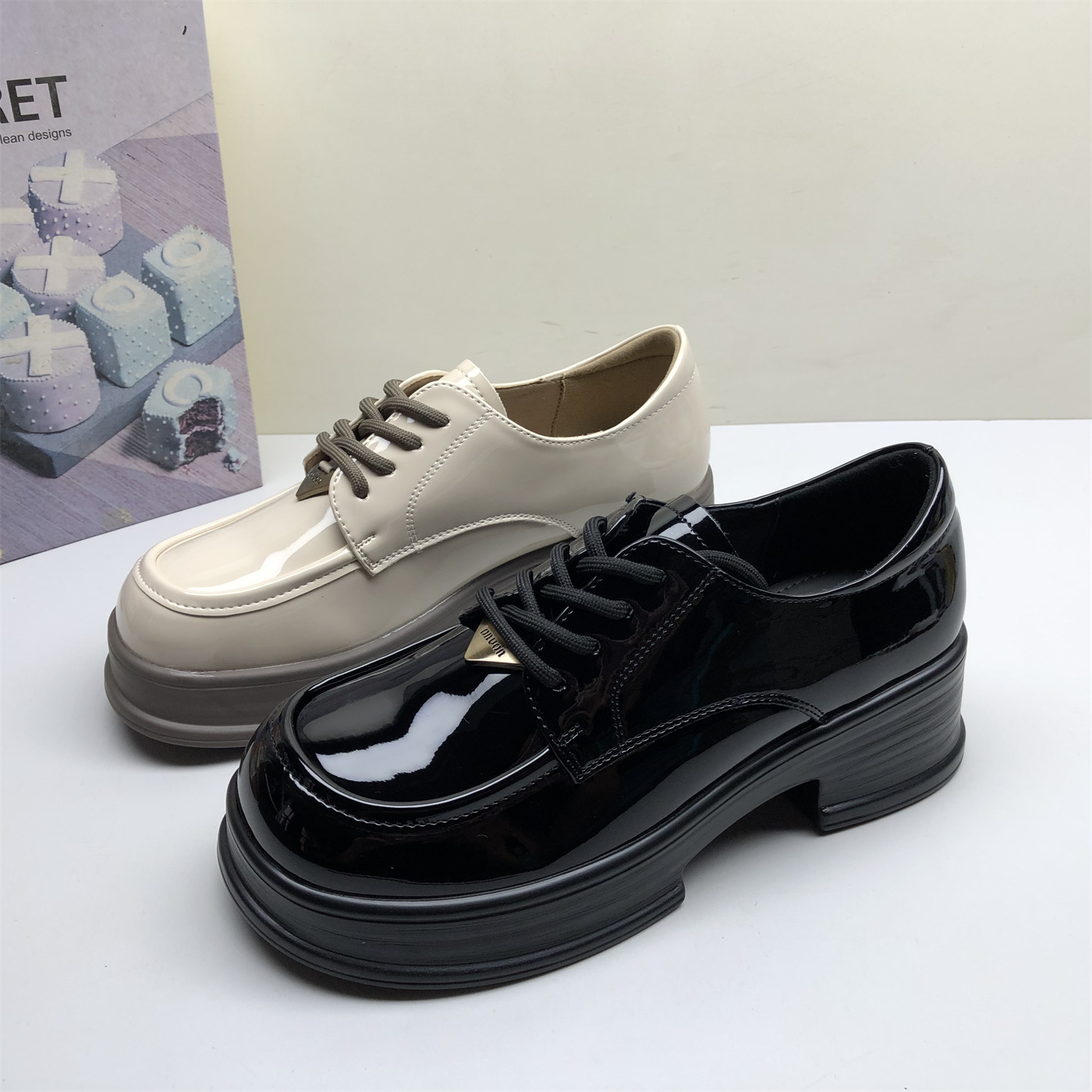 - 漆皮单鞋女平底英伦风