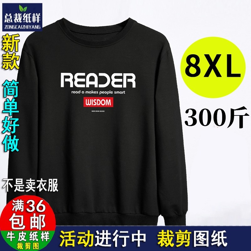 胖子男女卫衣宽松纸样男士圆领装加肥加大码套头1:1牛皮纸样Y210