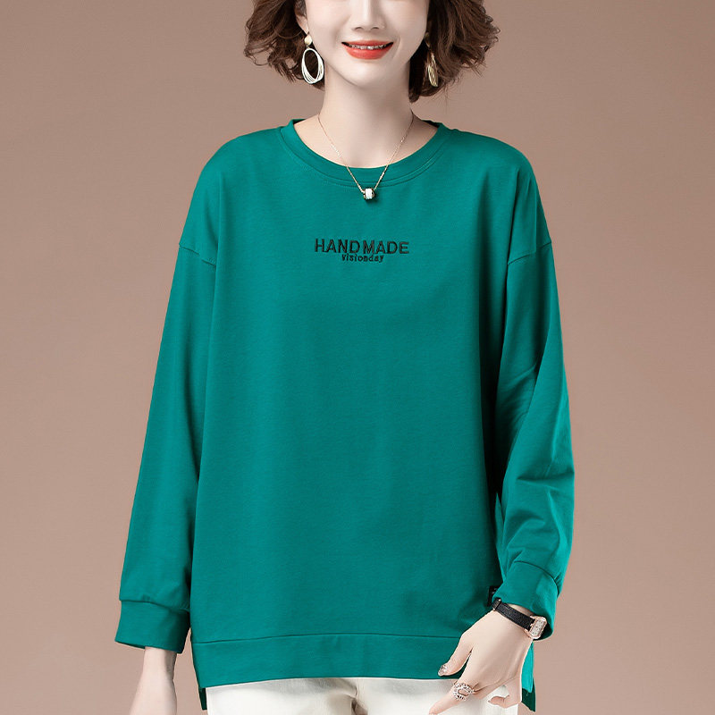 卫衣女春秋薄款加肥加大码女装宽松中年妈妈纯棉圆领显瘦套头上衣