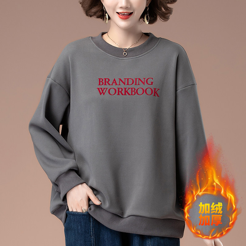 卫衣女秋冬季加绒加厚中年妈妈休闲加肥加大码显瘦保暖套头上衣女