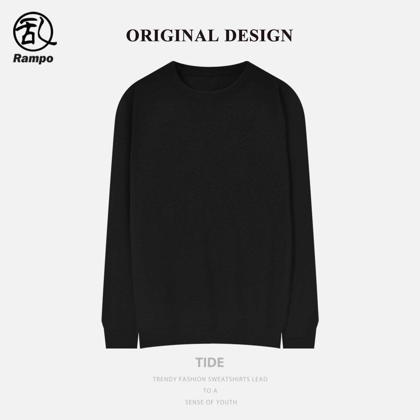 乱步潮牌纯色圆领卫衣男女情侣款宽松圆领套头加肥加大码学生班服