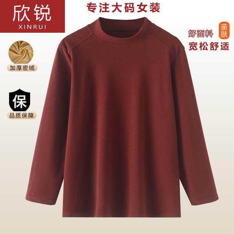 加绒卫衣女秋冬新款加肥加大码女装宽松中年妈妈套头加厚打底衫女