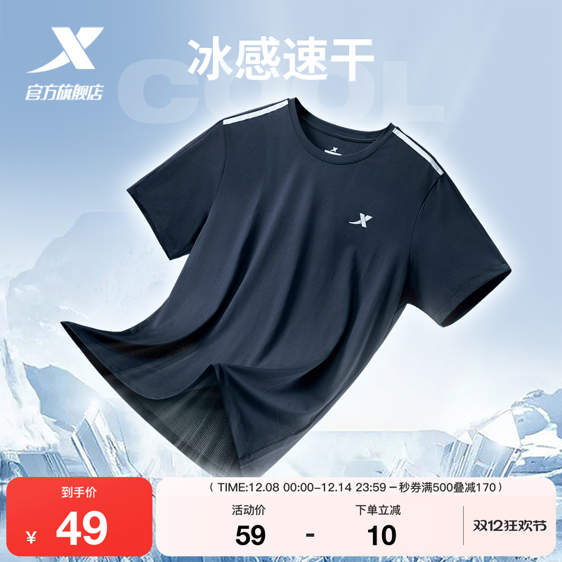 特步速干T男夏季宽松短袖冰丝户外跑步T恤透气上衣男士健身运动服