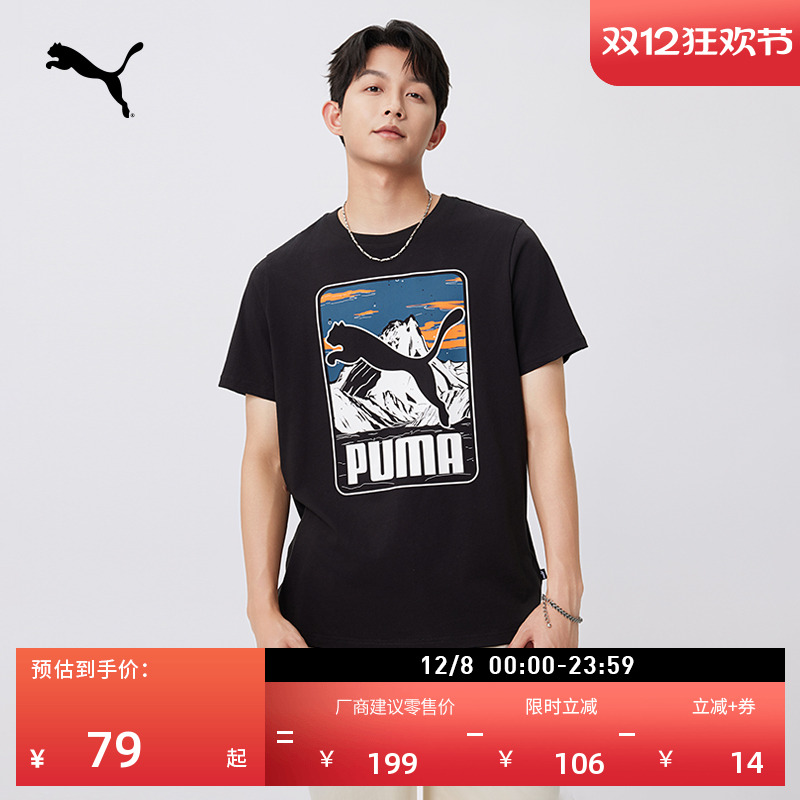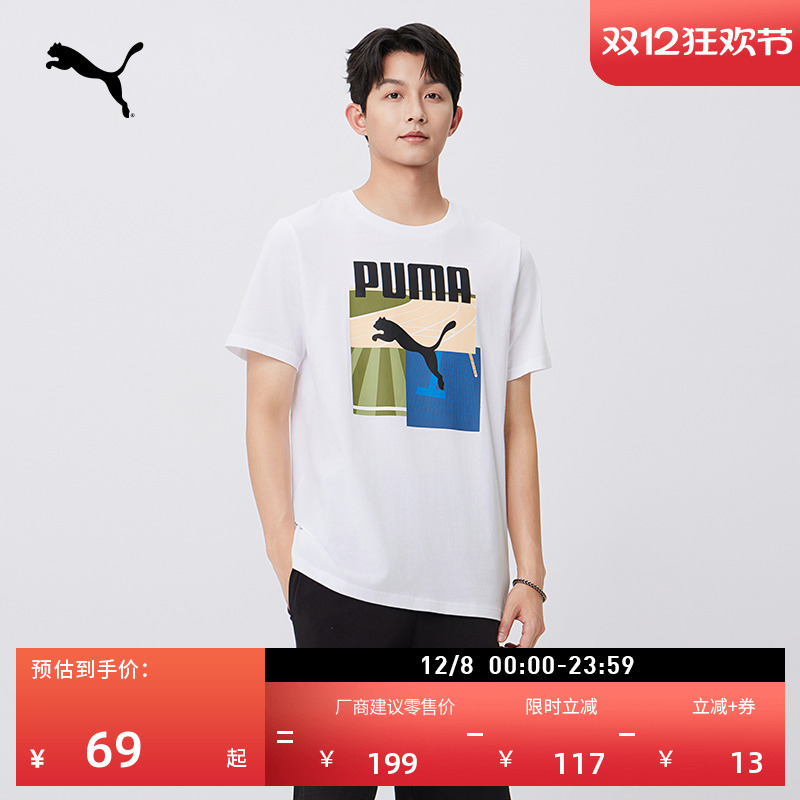 印花休闲短袖T恤男纯棉宽松圆领运动上衣688921彪马puma官方奥莱