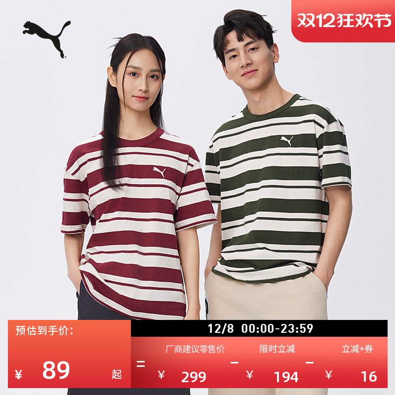 美式复古红宽松短袖T恤男女PUMA彪马官方新款条纹运动上衣 633854