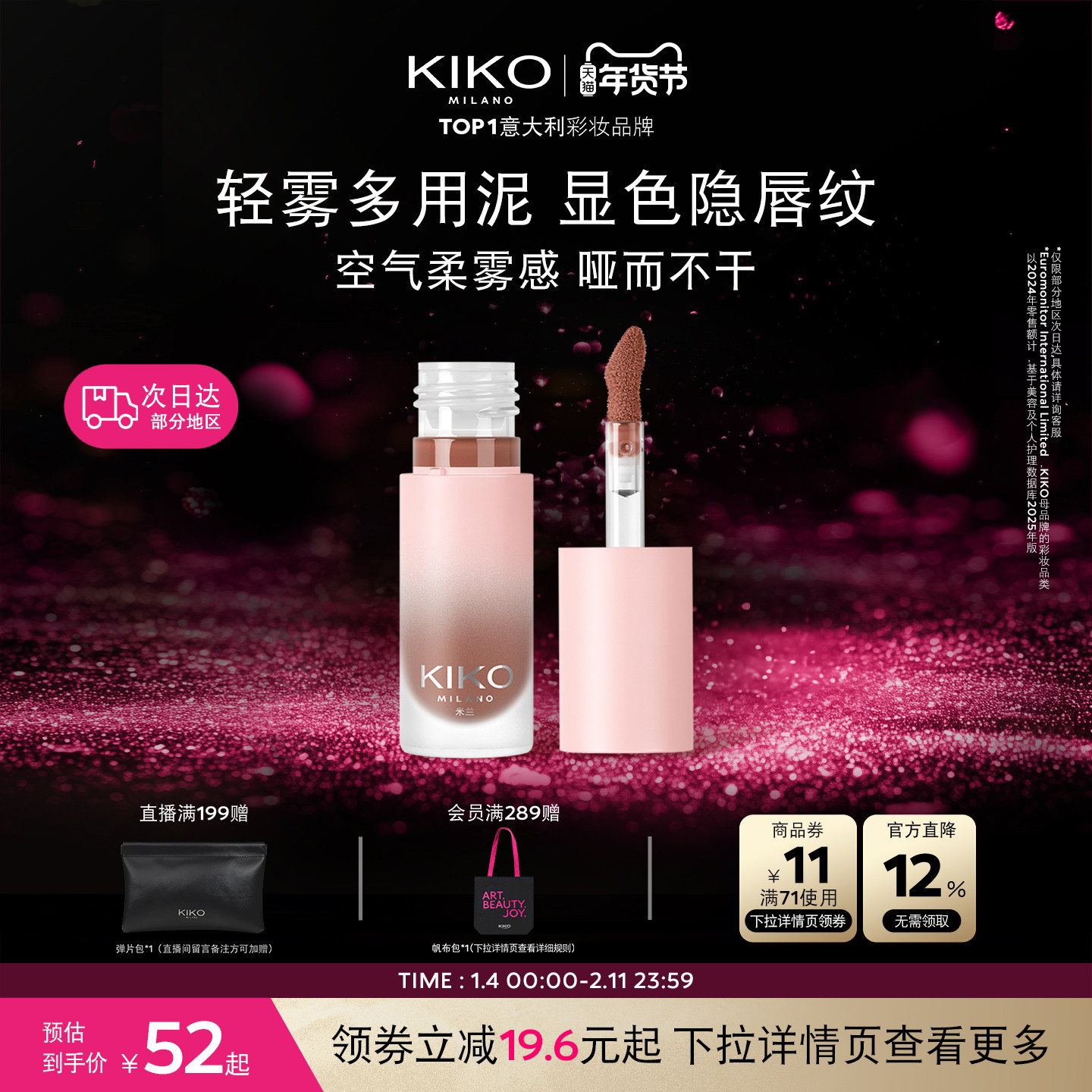 意大利KIKO轻雾唇泥雾面哑光口红唇釉唇彩唇膏多用水润不拔干