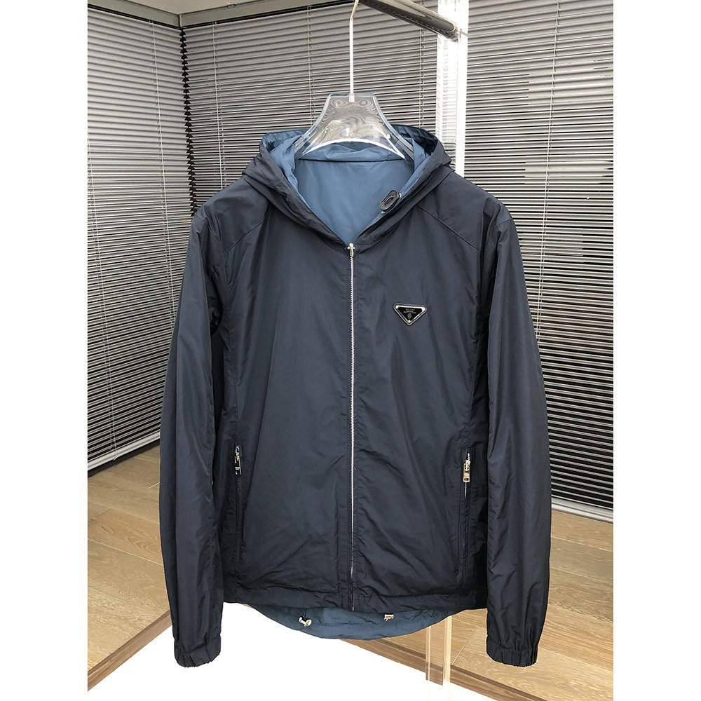 欧洲站高端潮牌欧货2025春季潮流三角标休闲连帽双面穿夹克男外套