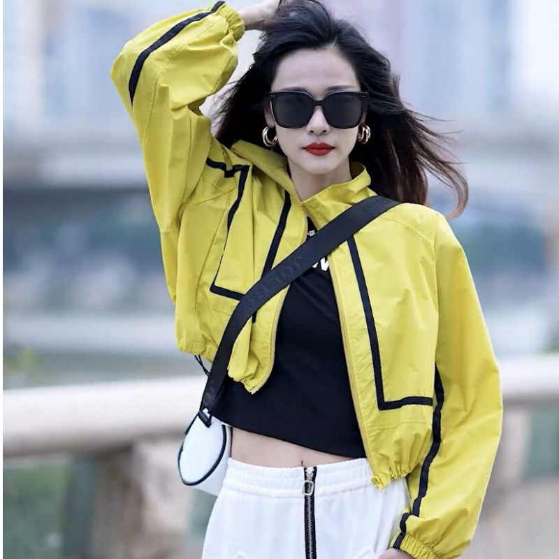 撞色条纹短外套女欧洲站2024春秋季宽松小众设计百搭短款夹克上衣
