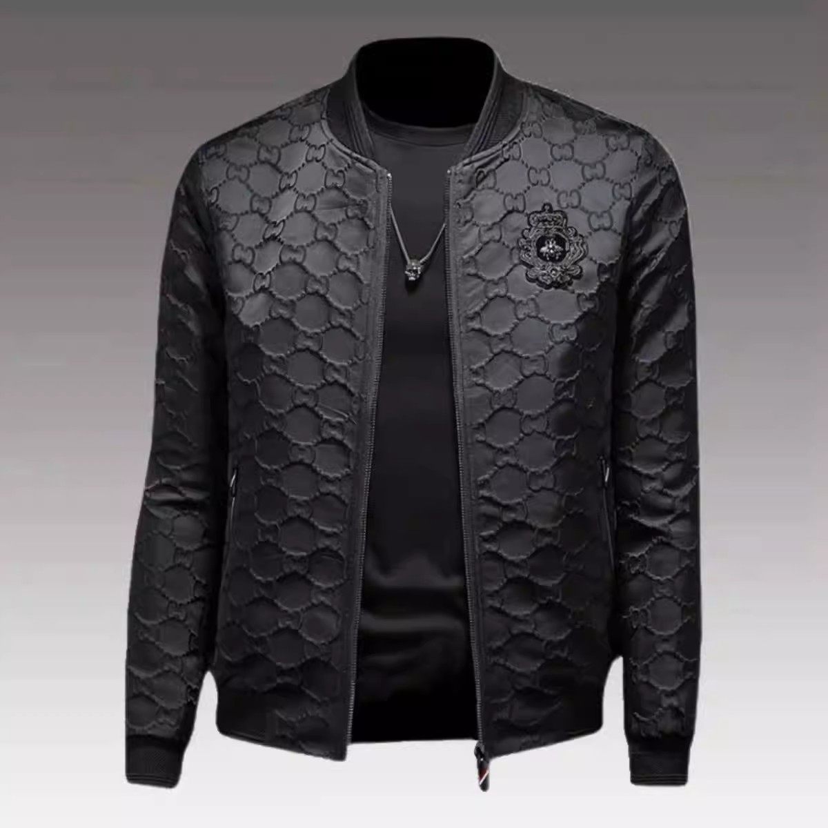 24秋季新款连帽夹克欧洲站印花暗花高级感外套简约百搭休闲宽松男