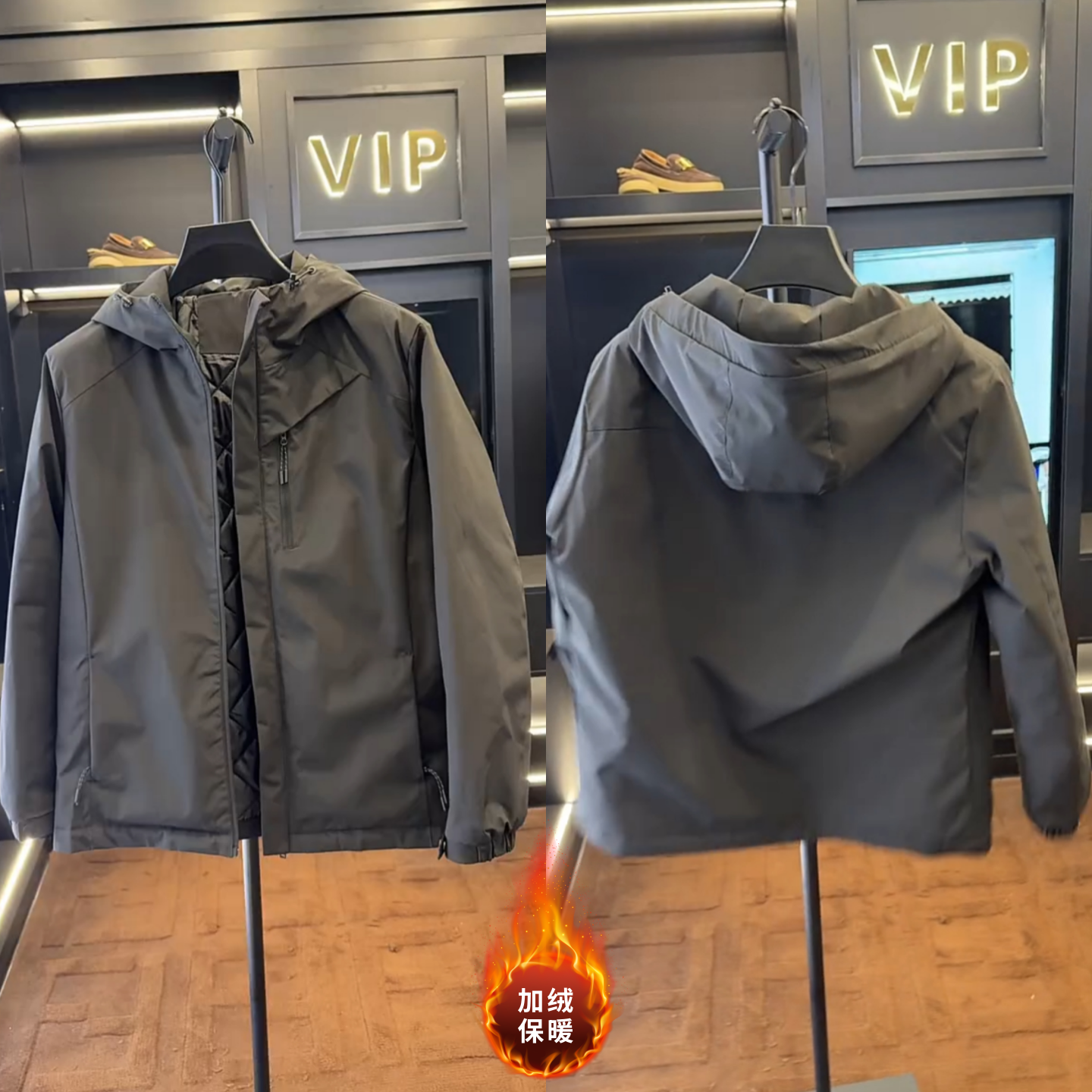 欧洲站秋冬新款户外冲锋衣连帽加棉时尚防风轻奢秋季男士夹克外套