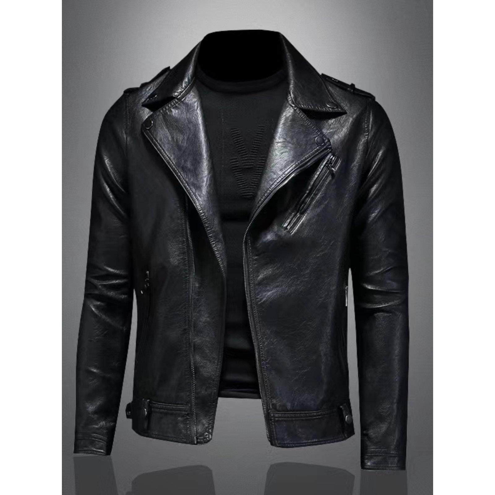 欧洲站夹克外套男软皮个性翻领机车2025秋冬休闲修身潮牌哈雷皮衣