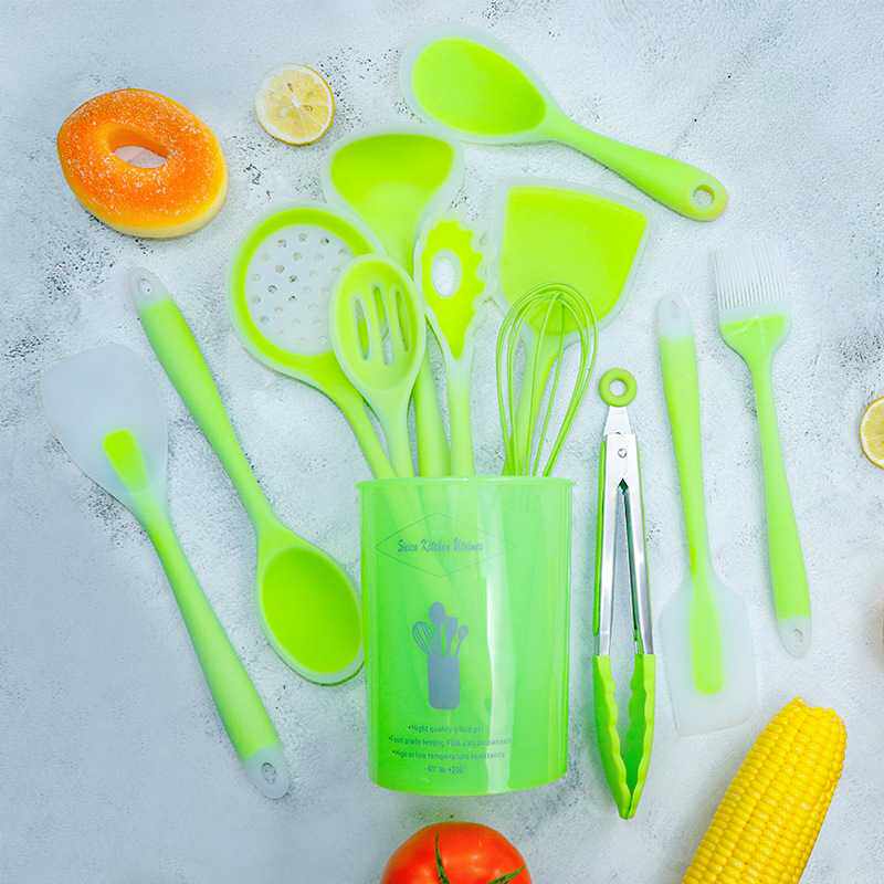 新款直销热卖半透硅胶厨具12件套 硅胶厨具套装 全包不粘锅锅铲汤