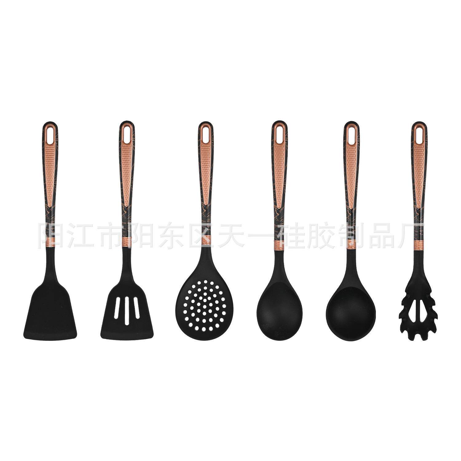 木柄硅胶厨具套装厨房不粘锅锅铲汤勺家用耐高温烹饪锅铲套装全套