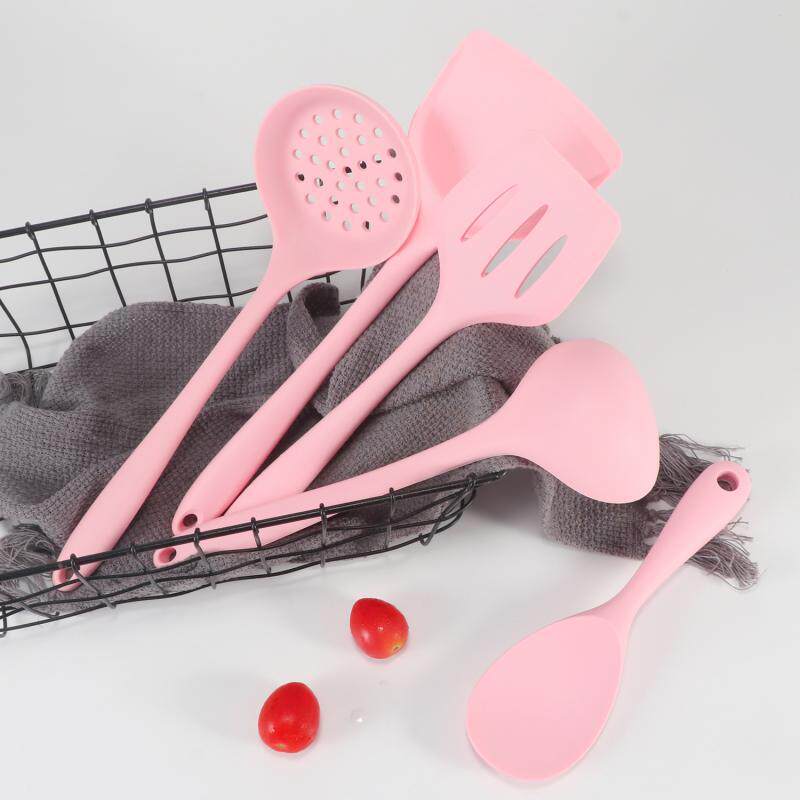 厨房工具 粉色硅胶不粘锅锅铲 不沾锅家用炒菜铲子 全包厨具5件套