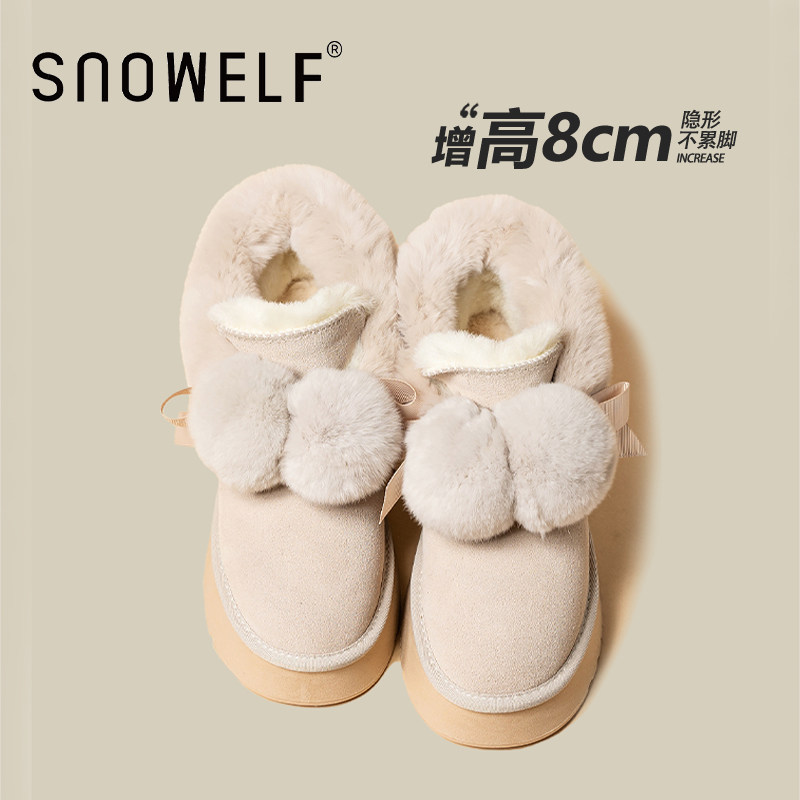 高蒂厚底雪地靴女短款2025新款冬季加绒保暖短靴增高棉鞋毛毛鞋