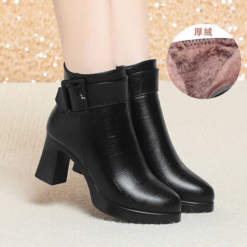 - 高跟鞋女秋冬粗跟短靴
