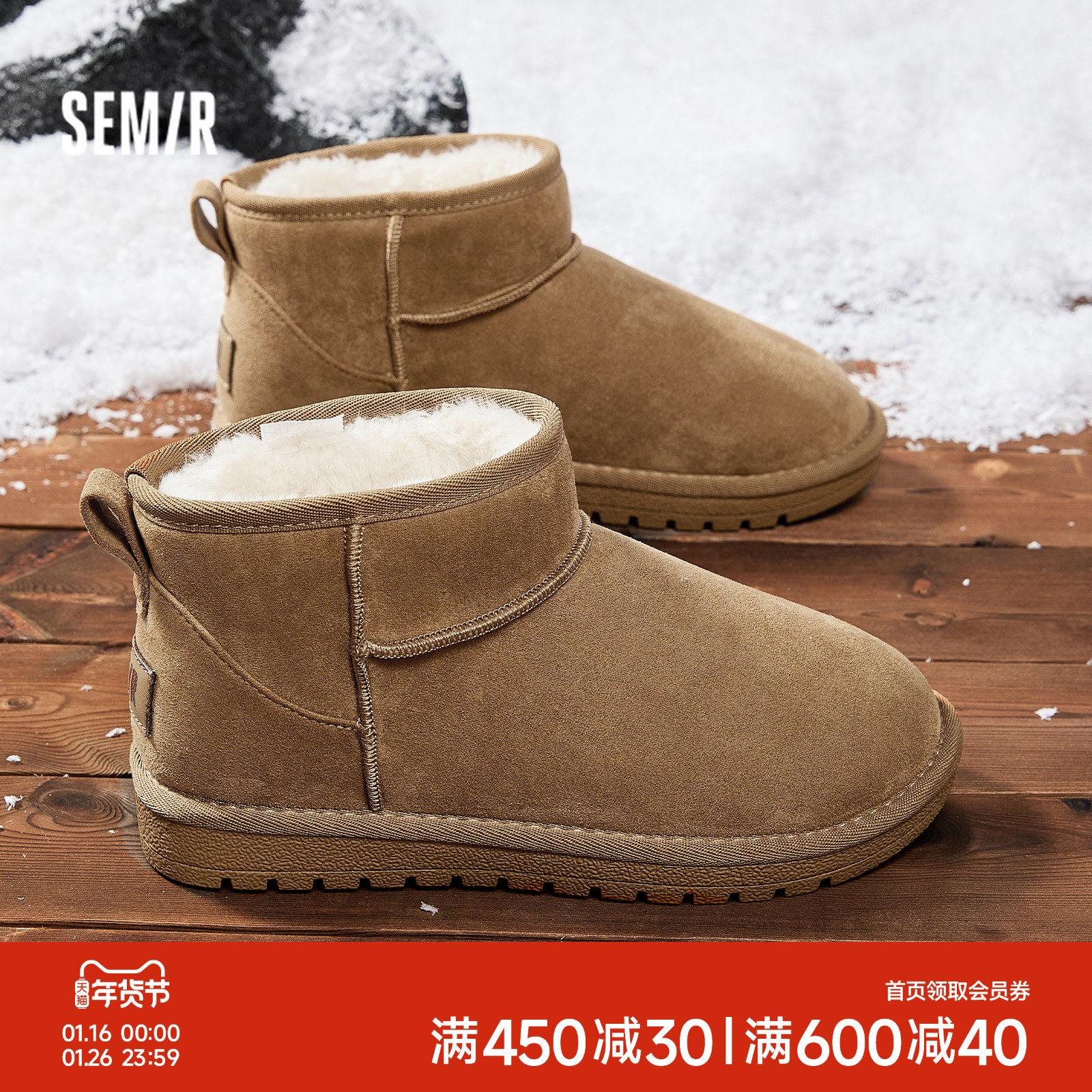 Semir女鞋雪地靴女款冬季2025新款加绒加厚雪地棉鞋短款面包鞋女