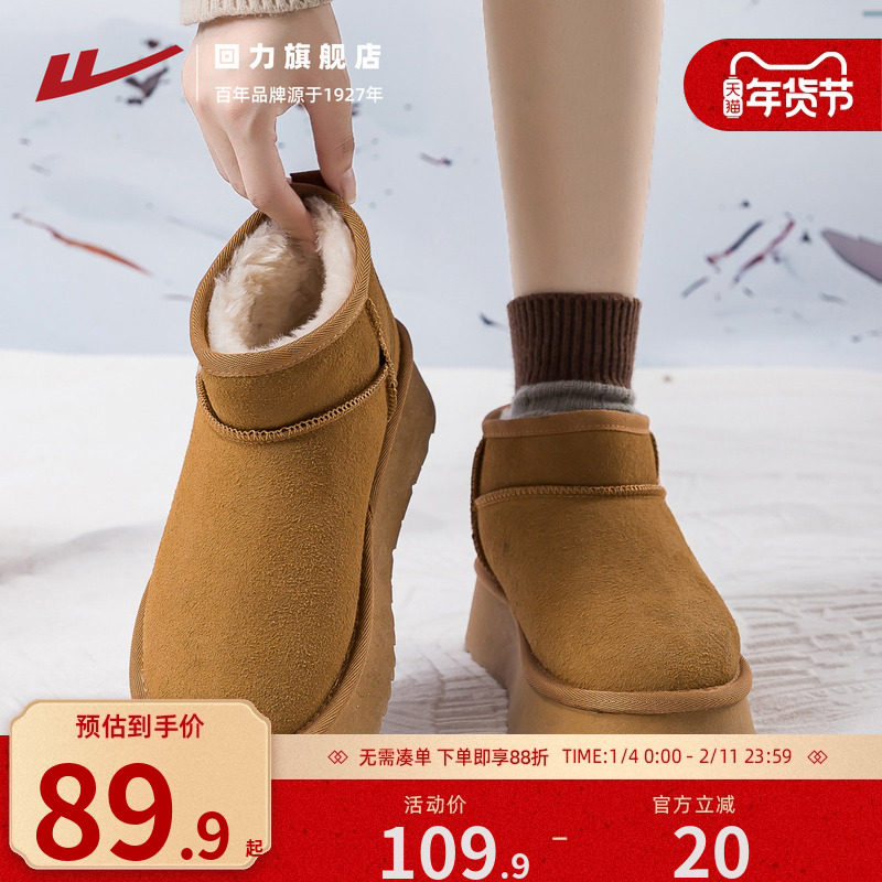 回力雪地靴女款2026冬季新款加绒加厚短款棉靴保暖外穿雪地棉鞋女