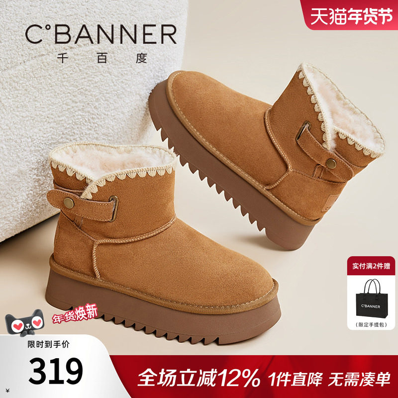 千百度雪地靴女冬季新款棉鞋加绒保暖加厚防滑厚底雪地棉短款女靴