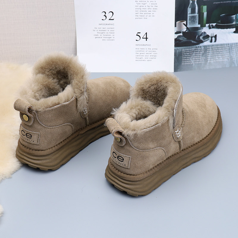 羊毛雪地靴女2025新款冬季低帮加绒保暖棉鞋皮毛一体防滑厚底短款