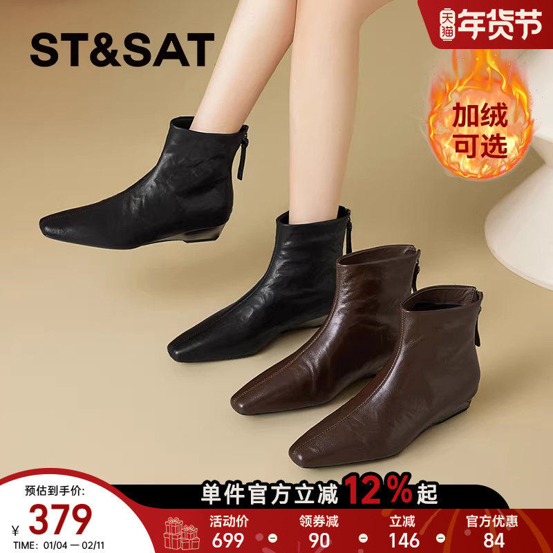 【头层羊皮加绒保暖】星期六尖头马丁靴女款短款粗跟切尔西靴鞋直
