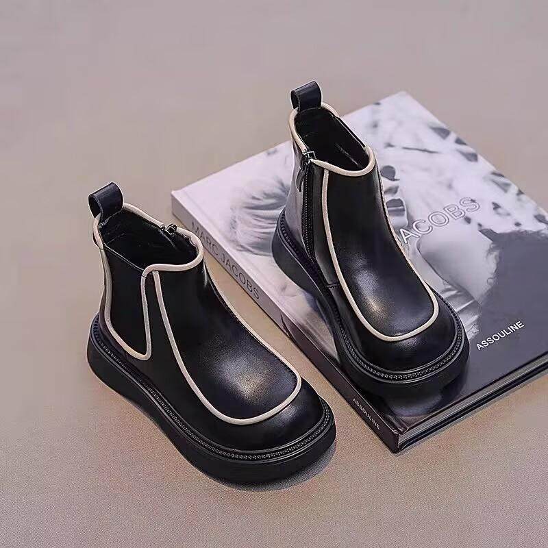 真皮女童2024秋冬新款学生儿童短款小女孩软底防滑加绒马丁靴软皮