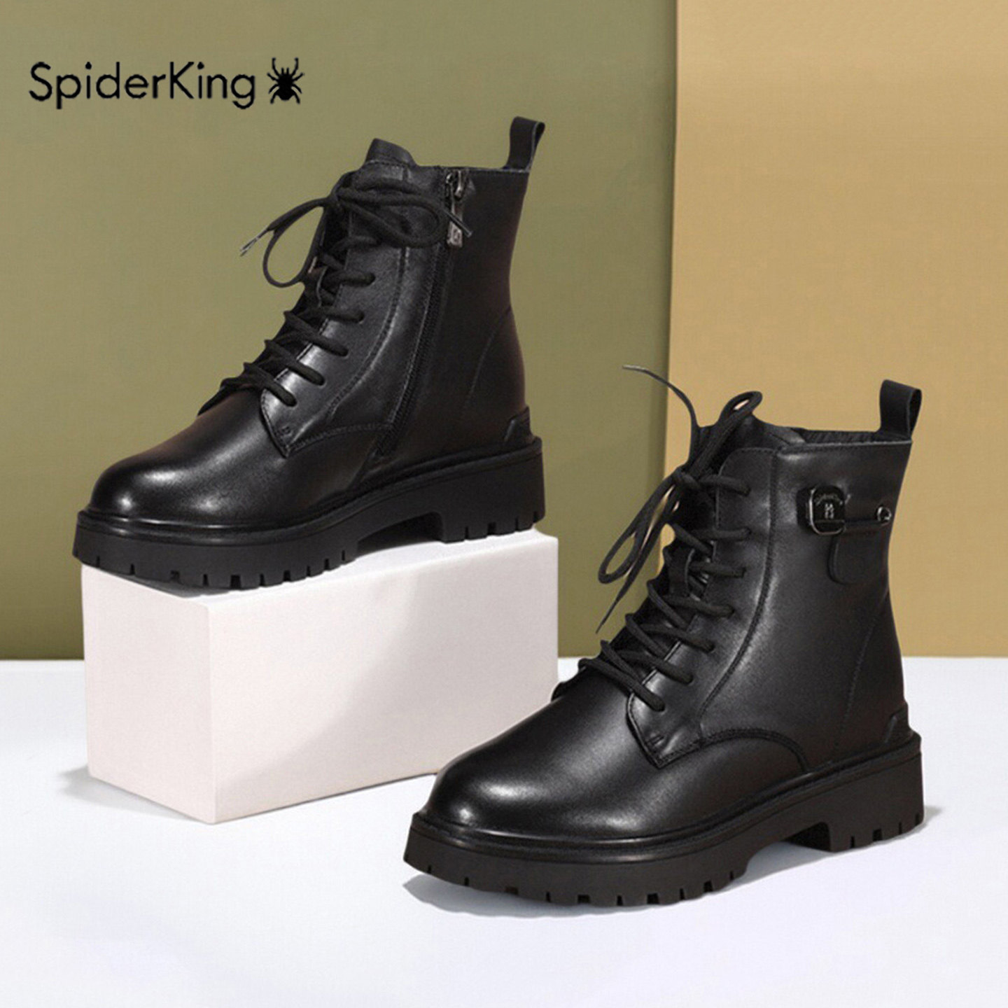 蜘蛛王厚底马丁靴女2025新款秋冬季真皮百搭短靴加绒防滑短款棉靴