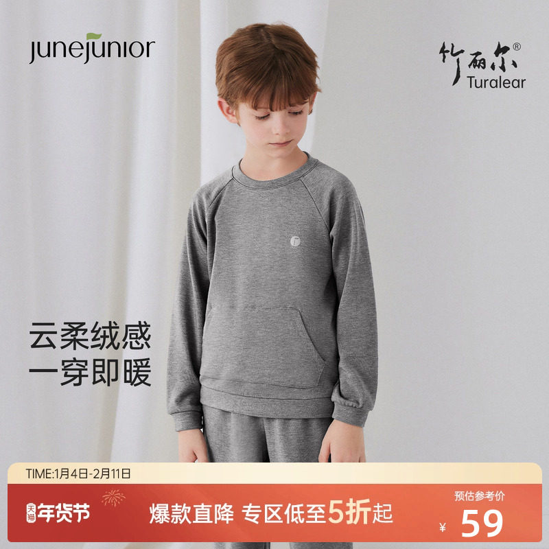 junejunior儿童卫衣卫裤春秋款男女童竹丽尔透气排汗长袖裤子套装