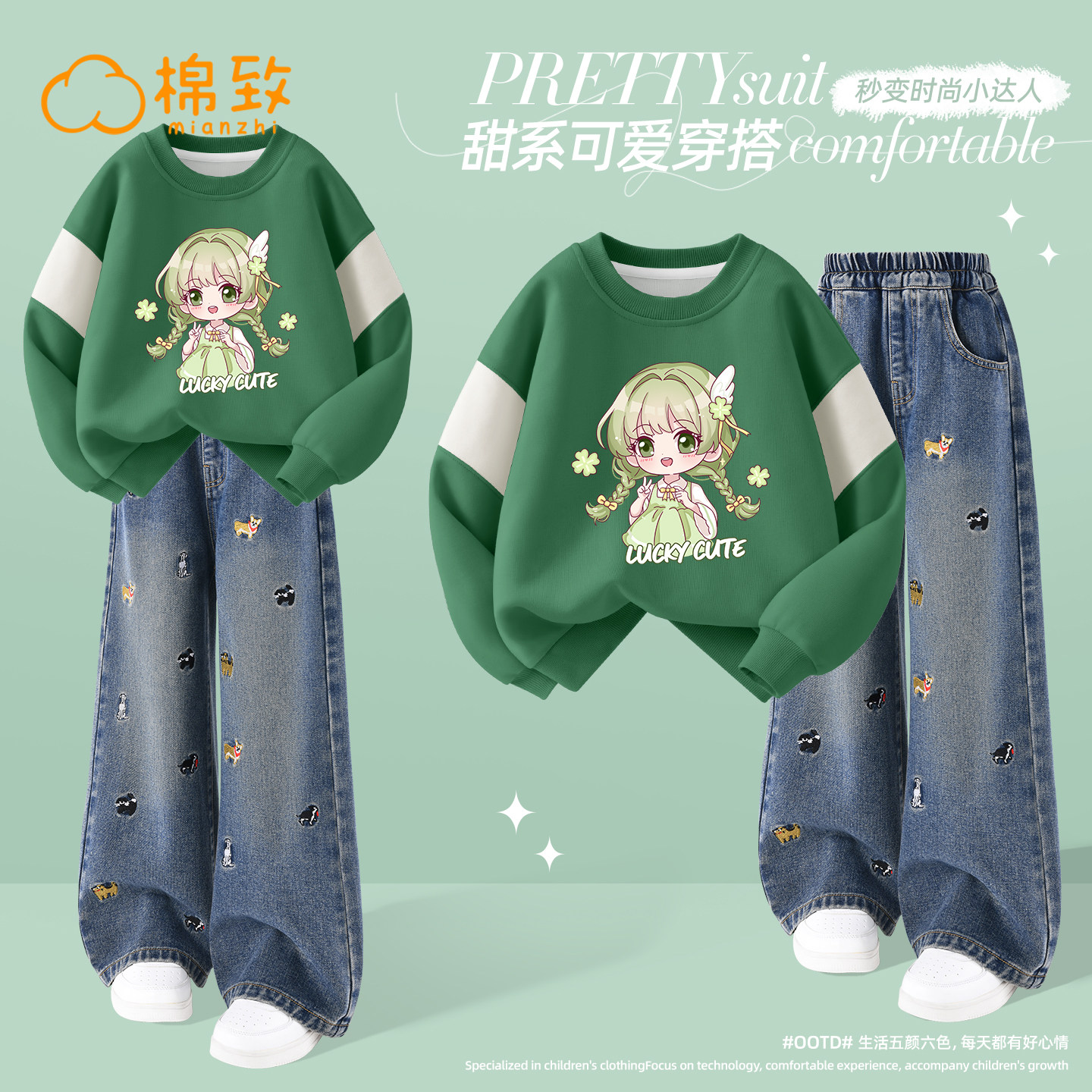 棉致女童春装套装2026新款春季薄款大童卫衣洋气春秋款儿童牛仔裤